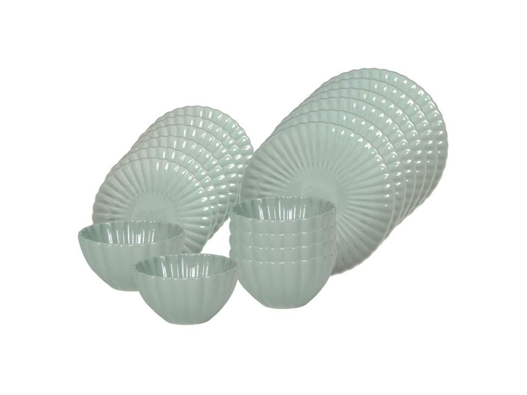 HIT Jídelní sada talířů porcelánová PEARL 18 ks zelená HT-24327959