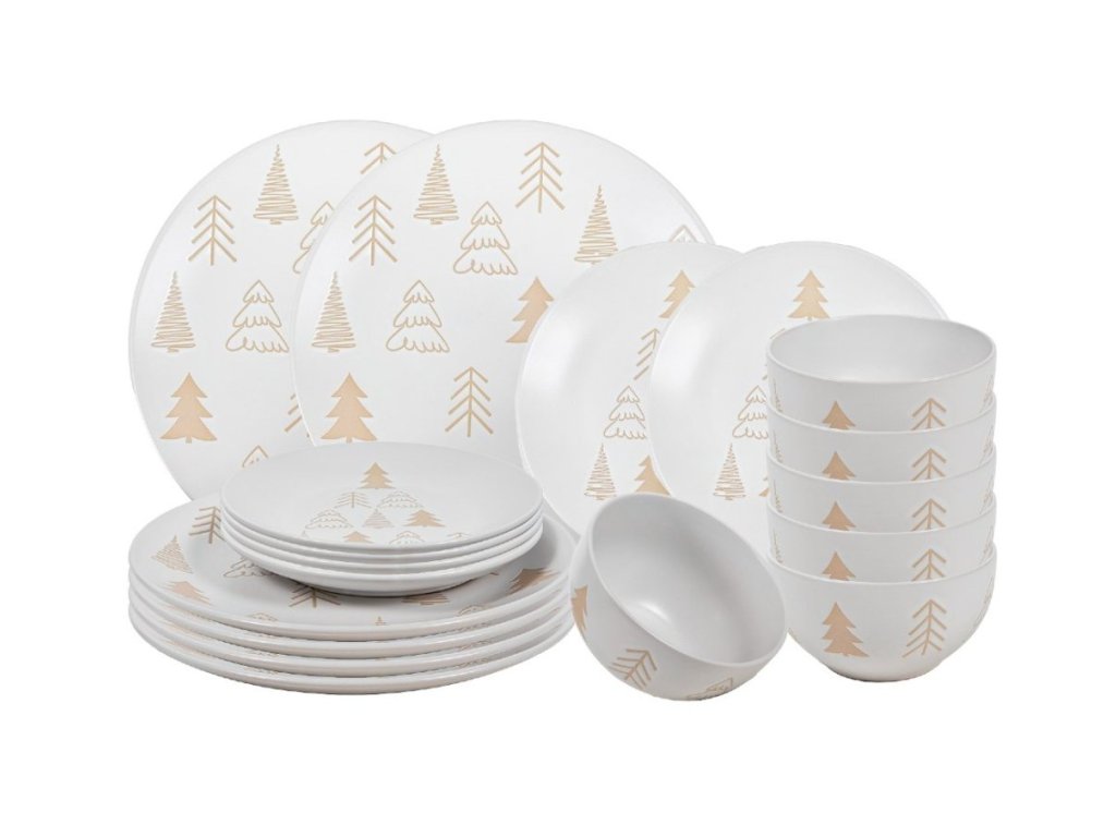 HIT Jídelní sada talířů Vánoční 18 ks White Trees HT-23106422