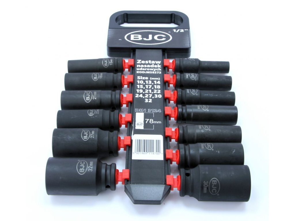 Hlavice nástrčná rázová, sada 13 ks, 1/2“, 10-32 mm, 78 mm BJC