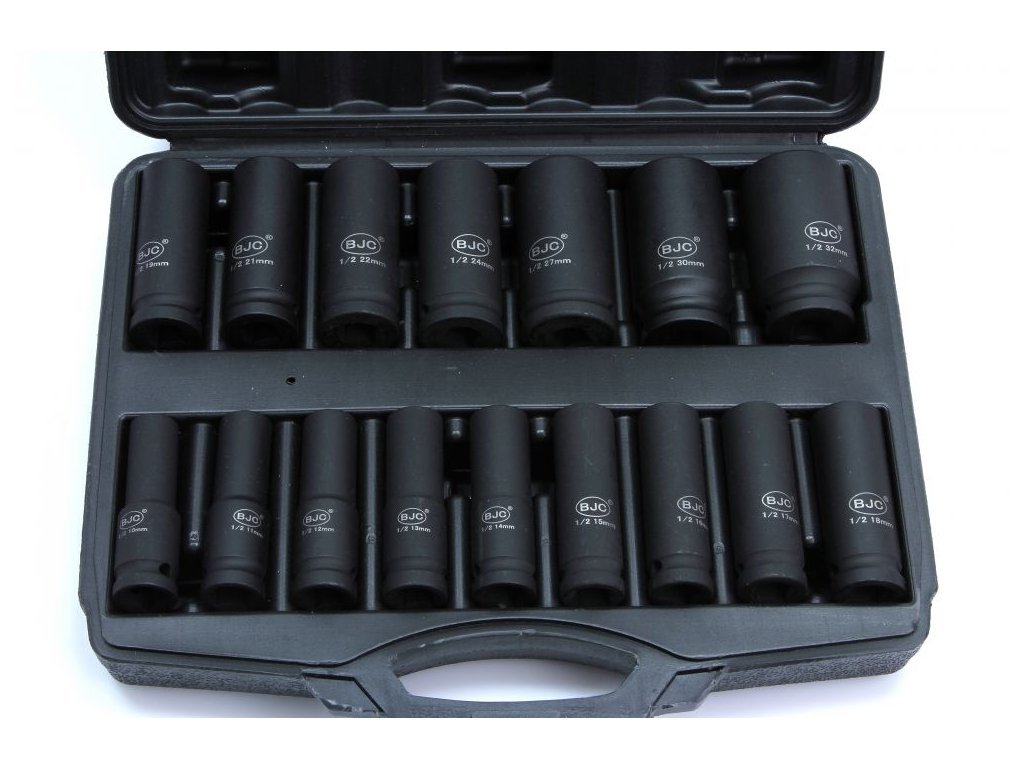Hlavice nástrčná rázová, sada 16 ks, 1/2“, 10-32 mm BJC