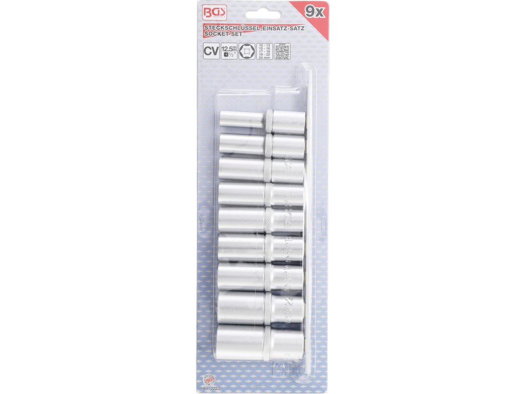 Hlavice nástrčné 1/2” 6hranné, 10-24 mm, prodloužené, sada 9 ks - BGS 2223