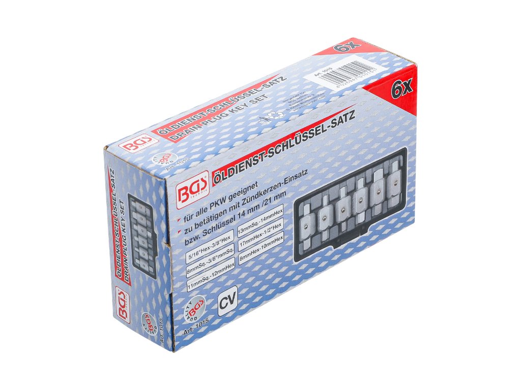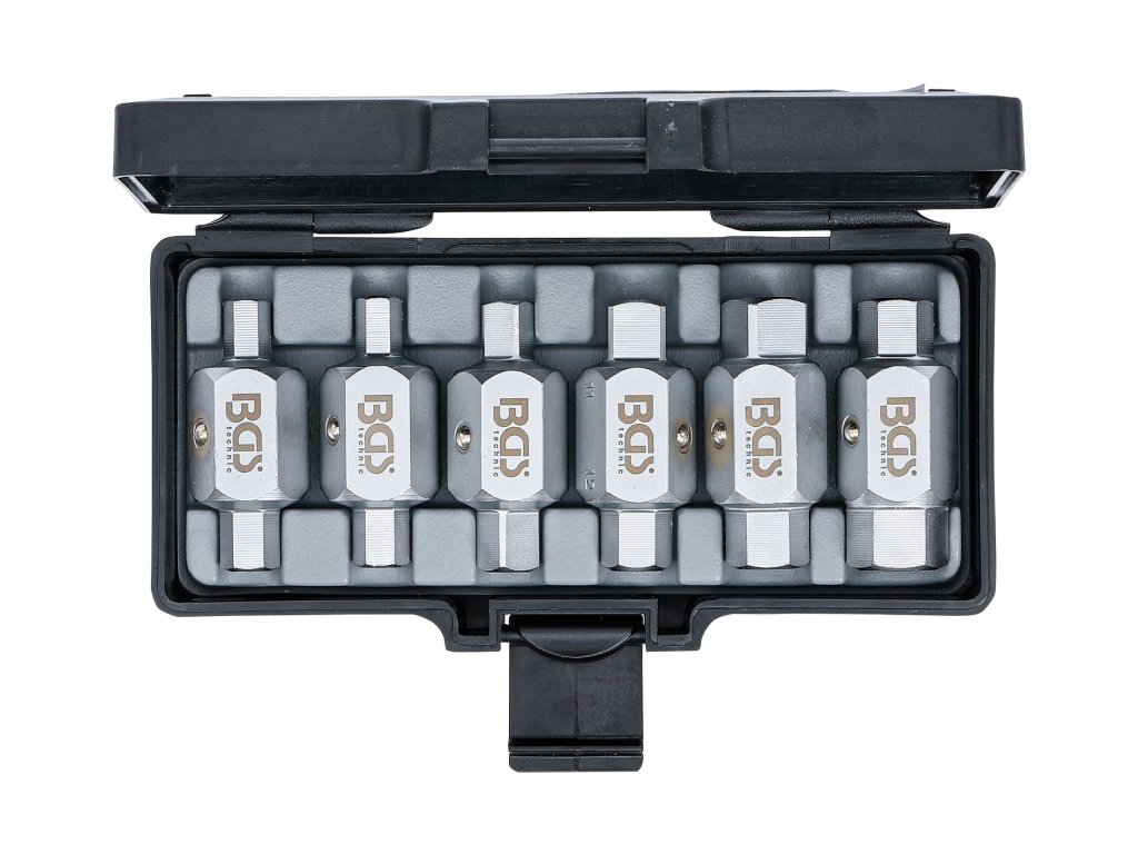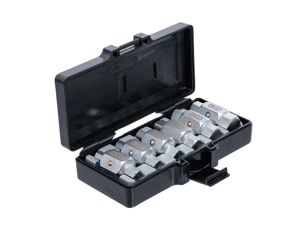 Rozměry 5/16“ x 3/8“; 8 x 3/8" (4hr); 8 x 10 mm; 11 mm (4hr) x 12 mm;13 mm (4hr) x 14 mm; 1/2“ x 17 mm.