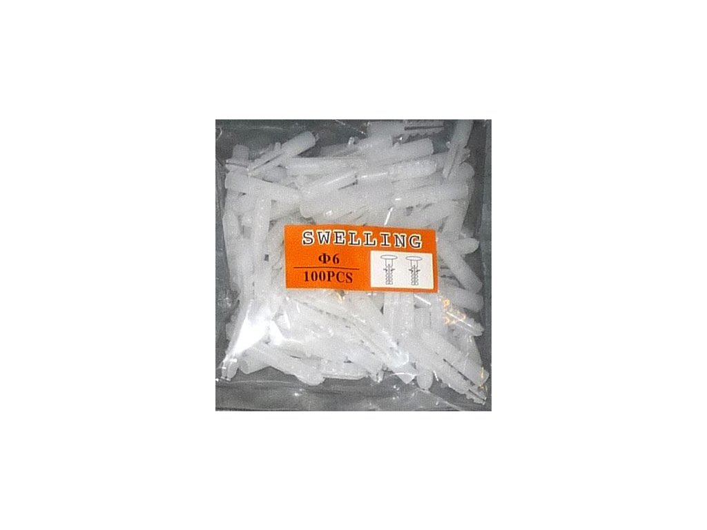Hmoždinka 6mm nylonová bílá, balení 100ks