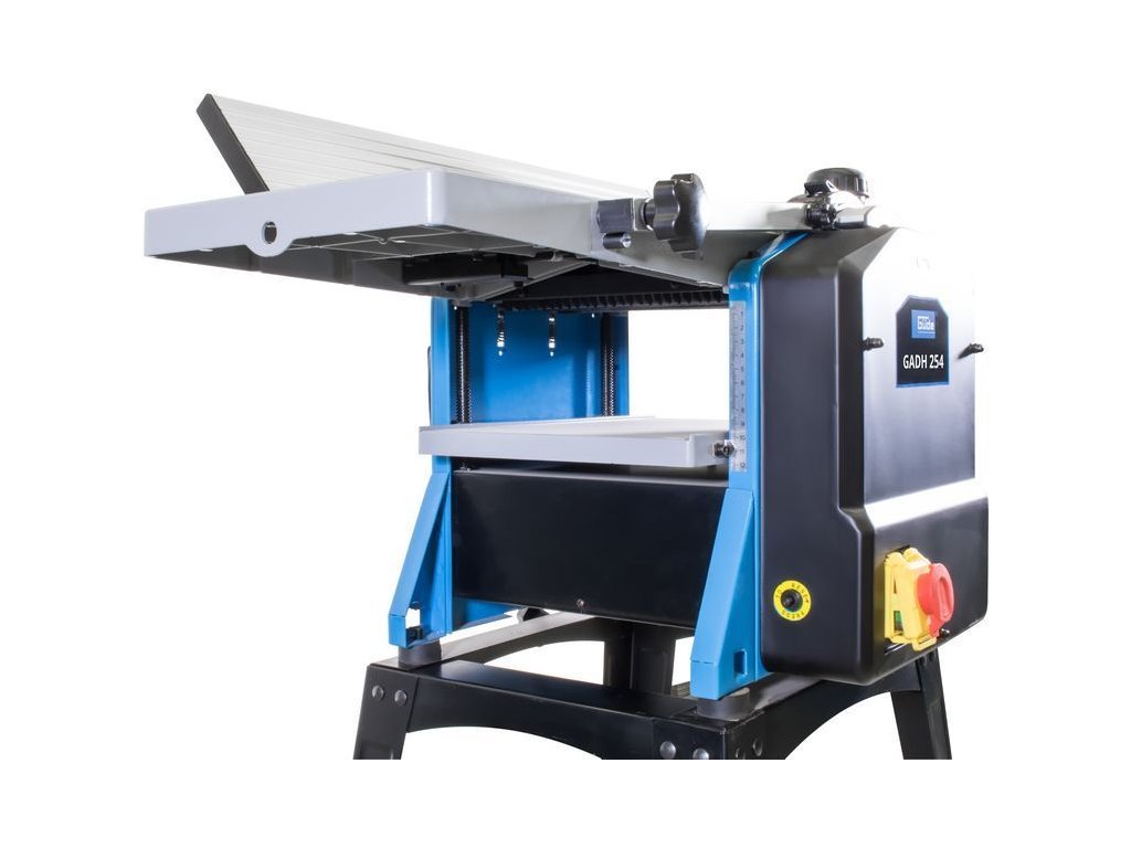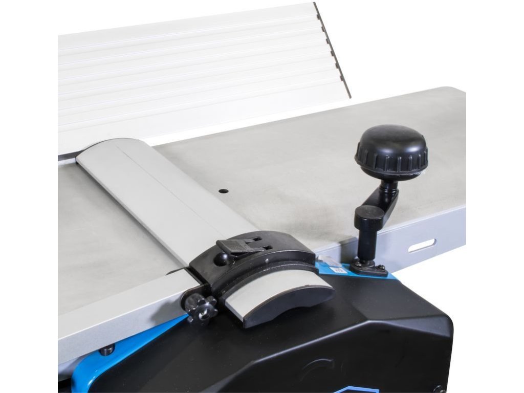 - Konstrukce: hliníkový hoblovací stůl (d x š: 920 x 264 mm), ochranný kryt nožové hřídele, výsuvná opěrka obrobku, HSS řezné nože (2), přípojka odsávání, robustní ocelový podstavec.
