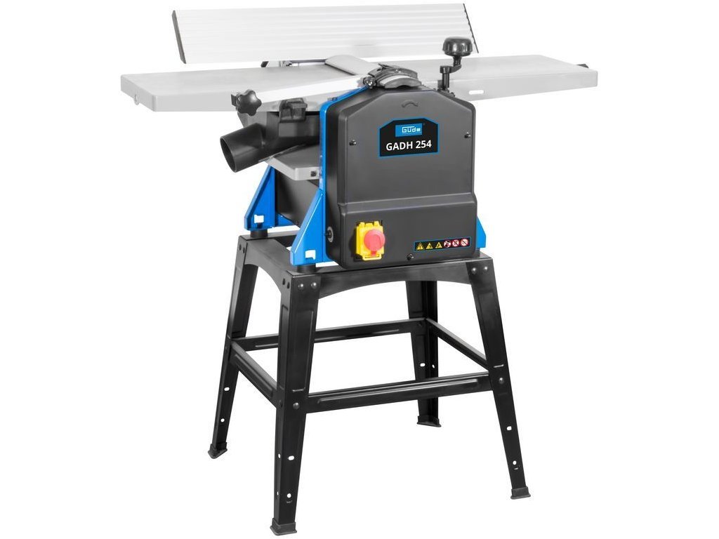 Hoblovka s protahem GÜDE umí: srovnávání povrchu, sražení hran a tloušťkování plochých nebo hranolových profilů (lišt, latí, desek, hranolů atp.; max. šířka/výška obrobku: 254 mm/120 mm). Plynulé nastavení úběru třísky (srovnávání: 0 - 2 mm, tloušťkování: 0 - 2 mm); protahování s automatickým přísuvem obrobku; přesné srážení hran pomocí výklopné vodicí zarážky (rozsah: 0 - 45°).