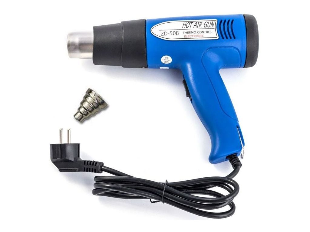Horhovzdušná pistole se dvěmi stupni výkonu.I. stupeň: výkon: 750W, teplota: 350°C, proud vzduchu 450l/min