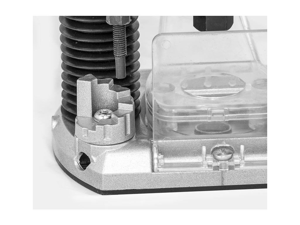 - 8-stupňová předvolba otáček podle druhu obráběného materiálu (rozsah: 11 000 - 30 000 min), přesné nastavení hloubky řezu 0 - 55 mm, aretace hřídele pro snadnou/rychlou výměnu fréz.