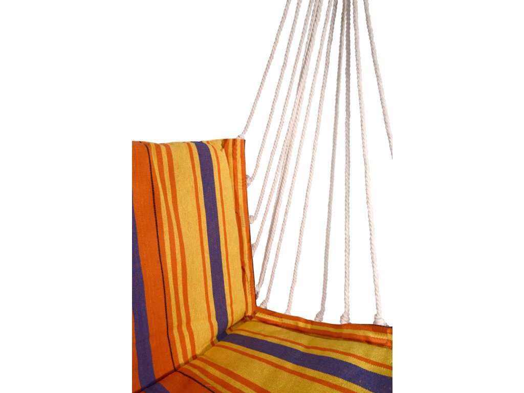 Síť je tvořena měkkým polstrovaným sedákem o rozměrech 50 x 45 cm a opěrkou s výškou 50 cm. Vysokou míru komfortu zajišťuje právě polstrování o tloušťce 3 cm, doplněné hustě tkaným, měkkým a pružným vláknem jednotlivých provazů.