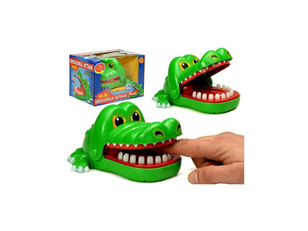Krokodýl má v ústech 13 zubů, které můžeme kontrolovat.<BR/>Obvykle se při stlačení hřebíčku nic neděje, ale pozor! Jeden ze zubů krokodýla je nemocný, a když na něj narazíme, zvíře rychle zacvakne čelisti a kousne nám prst! Není však třeba se obávat. Zuby nejsou ostré a krokodýl nekouše tvrdě, takže neexistuje způsob, jak ublížit dítěti. S hračkou si můžete hrát sami, snažíte se zatlačit všechny zuby a necháte jen ten, který bolí. <BR/>Můžete se také bavit ve skupině.<BR/>Každý z hráčů stiskne jeden zub a ten, který krokodýl kousne prstem, spadne.<BR/>Hra se mezi zbývajícími hráči restartuje a postup seopakuje, dokud není určen vítěz.<BR/><BR/>Hračka je tak nepředvídatelná, že pokaždé, když krokodýl otevře ústa, je náhodně vybrán bolavý zub.<BR/>Díky tomu je hra napjatá, protože nikdy nevíme, kdy se krokodýlrozhodne uchopit čelisti.Doplňkové parametry