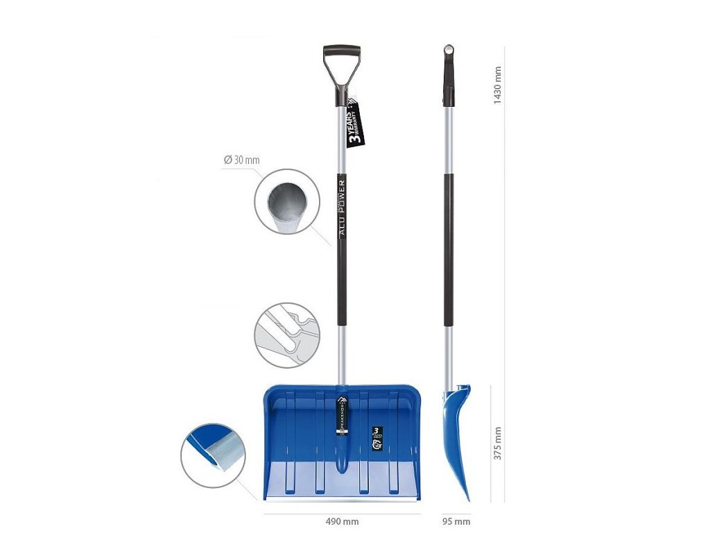 Hrablo na sníh ALPIN 2 ALUTUBE modrá, 37,5x49cm, kovová násada - SLOŽENÉ