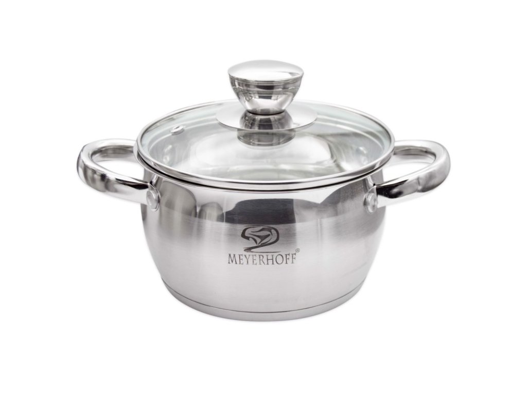 Hrnec nerez ¤14x9,5cm 1,3L MEYERHOFF T2 skleněná poklice