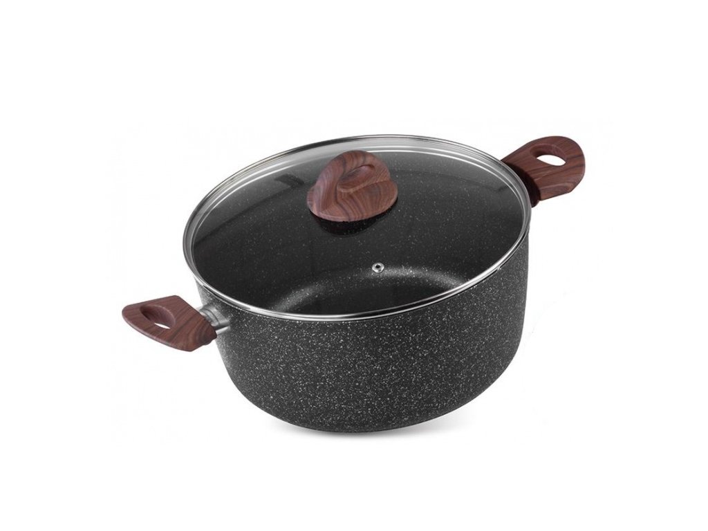 Hrnec s poklicí je vyrobený ze slitiny hliníku s nepřílnavým povrchem a 3vrstvým mramorovým nátěrem.