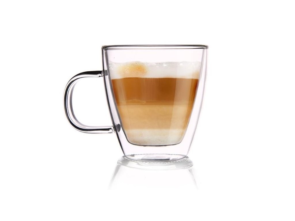 Dvojstěnné termo hrnečky v moderním designu.Dvojité borosilikátové sklo udrží dlouho teplotu nápoje.