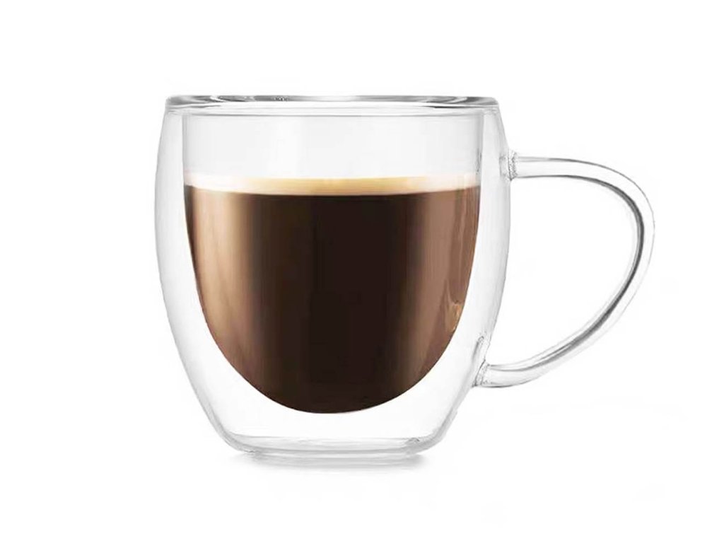 Dvojstěnné termo hrnečky v moderním designu, objem 250 ml.Dvojité borosilikátové sklo udrží dlouho teplotu nápoje.