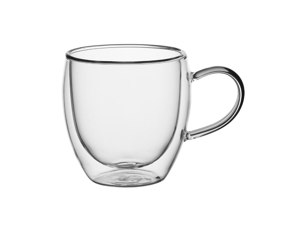 Dvojstěnné termo hrnečky v moderním designu, objem 250 ml.Dvojité borosilikátové sklo udrží dlouho teplotu nápoje.