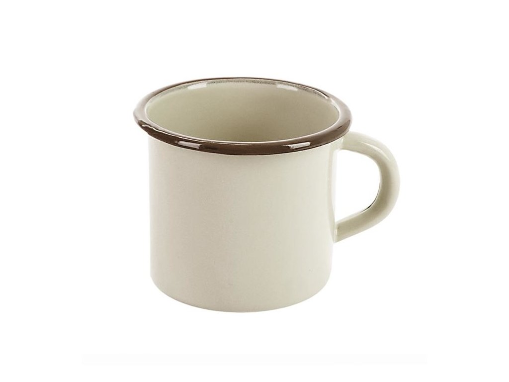 Smaltovaný hrnek objem 500 ml, průměr 9 cm a výška 8,2 cm.Hrnek je vhodný do myčky nádobí a na všechny typy plotýnek.