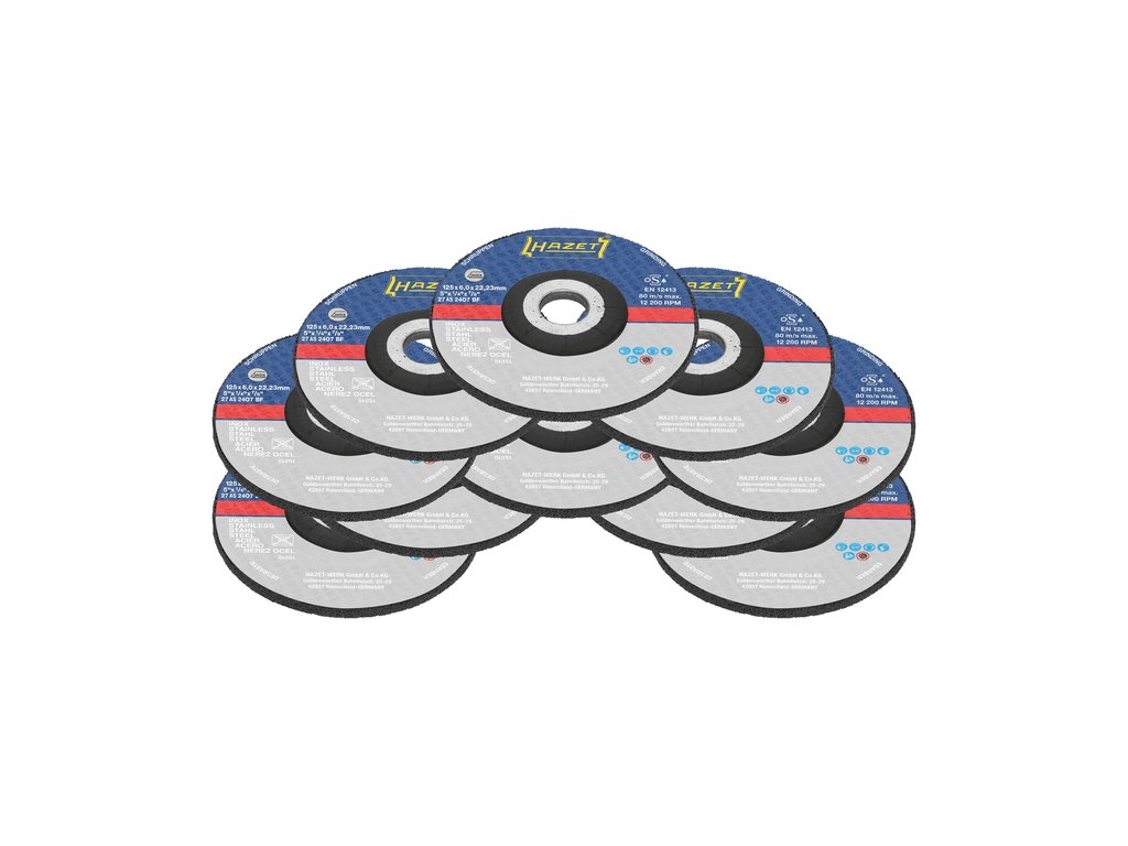 - 10 hrubovacích kotoučů 125 x 6 x 22,23 mm (5 x 1⁄4″ + 5 x 7⁄8″)
