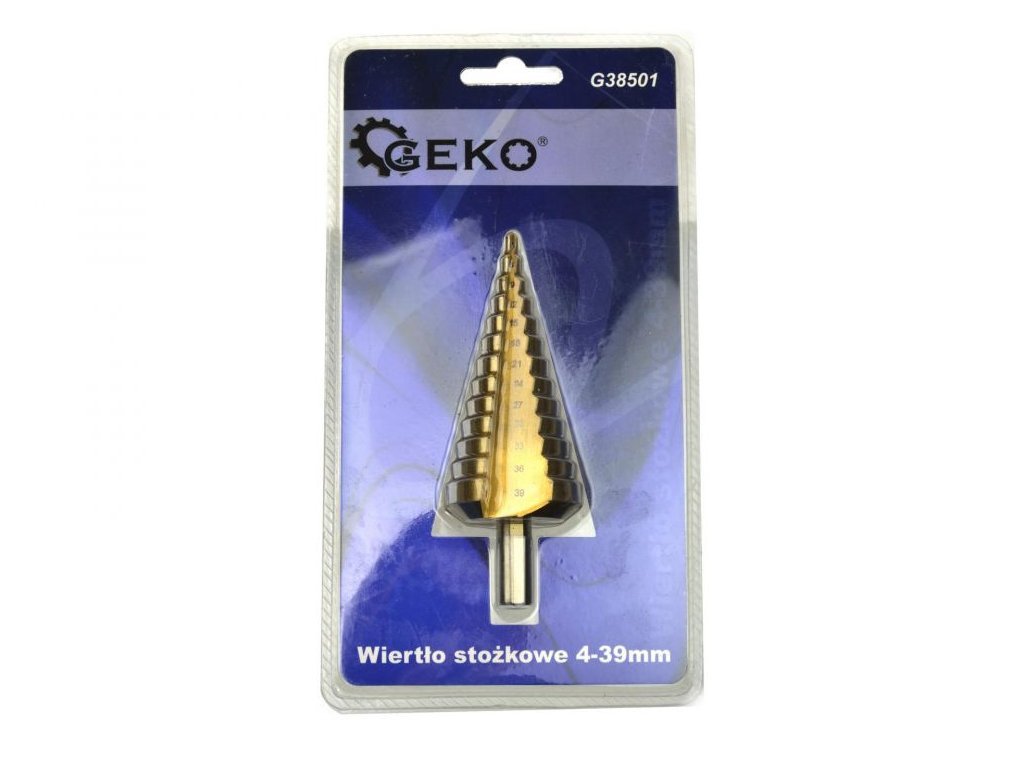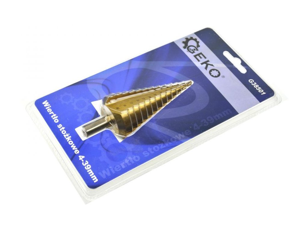Vrták stupňovitý, 4-39mm, stupňování po 3mm, 13 otvorů, stopka 13mm, TiN, GEKO