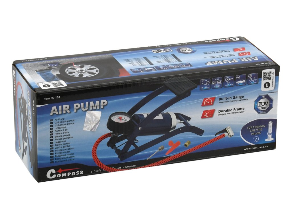 Klasická hustilka osazená dvěma písty, která je určená k huštění pneumatik automobilů, motocyklů, jízdních kol, matrací, míčů atp.