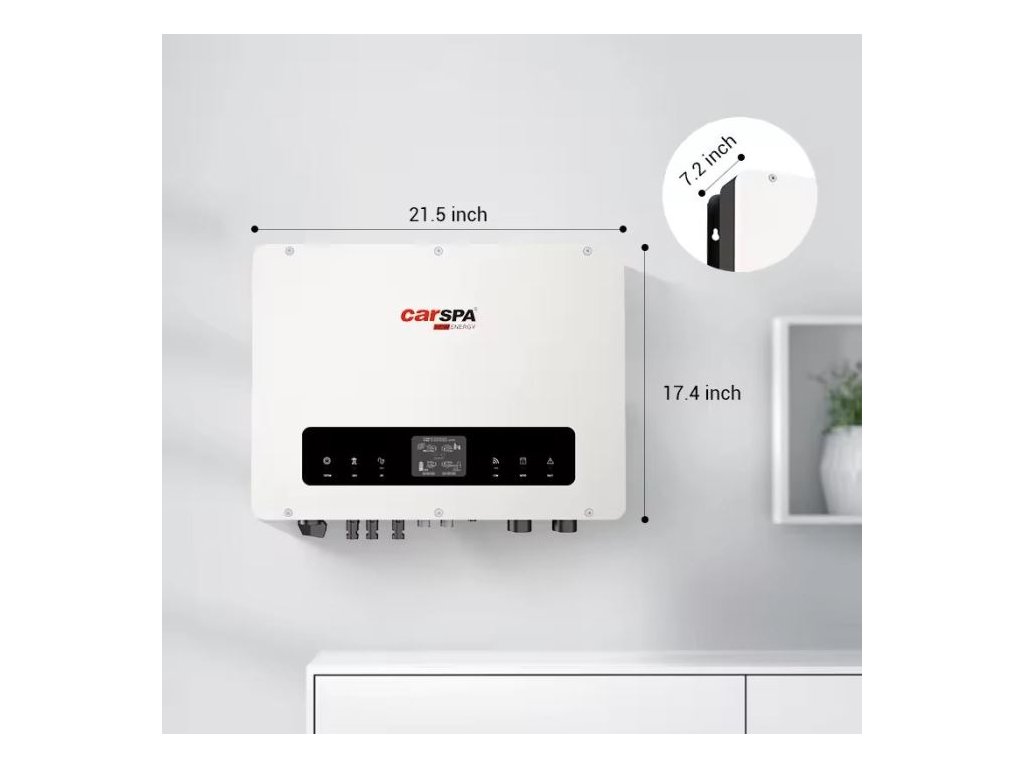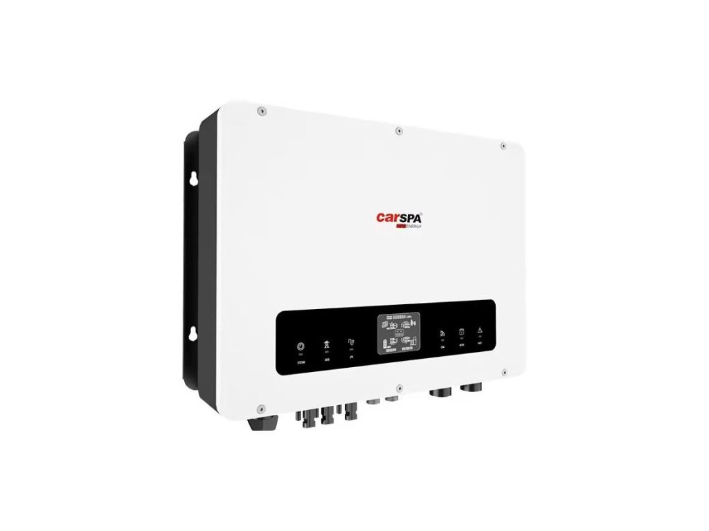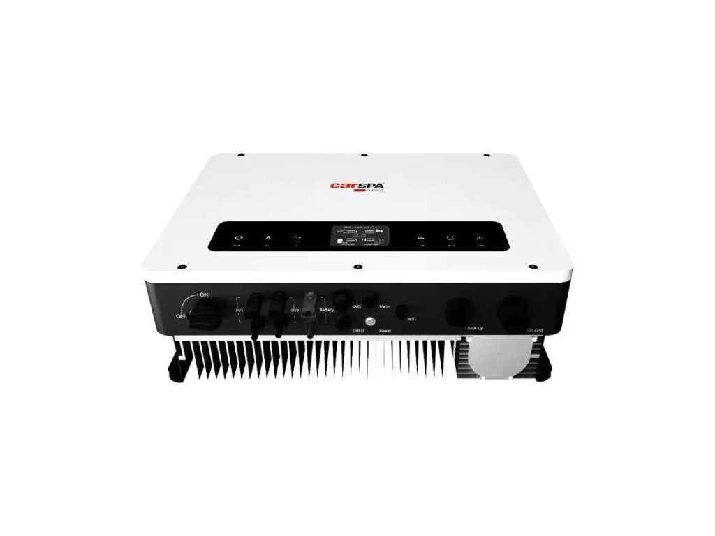 Hybridní měnič napětí Carspa CSPH12KTL CARSPA CSPH10KTL je moderní kompaktní třífázový hybridní fotovoltaický měnič s extrémně nízkou vlastní spotřebou energie, kombinuje funkce klasického měniče s možností využití bateriového uložiště energie.Měnič má plně asymetrickým třífázový výstup a umožňuje ukládaní přebytečné sluneční energie do baterie pro použití v pozdější době, čím zvyšuje energetickou nezávislost a zabezpečuje dodávku elektrické energie při výpadku veřejné elektrické sítě.
