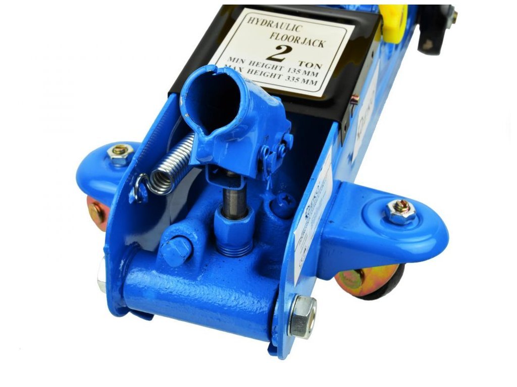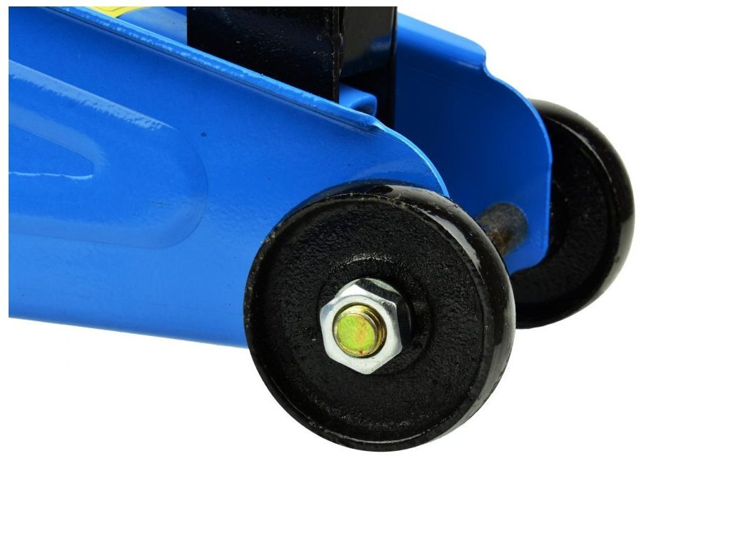 Pojízdný hydraulický zvedák 2 t s rukojetí a čtyřmi kolečky vhodný do dílny, servisu, pneuservisu nebo garáže, případně servisního vozidla. Rampa je vyrobena ze silného ocelového plechu, který zajišťuje odpovídající tuhost a pevnost konstrukce. Zvedák má vypouštěcí ventil, integrovaný s pojistným ventilem. Je vybaven kovovými předními koly a otočnými zadními koly s kuličkovými ložisky, které zajišťují stabilní provoz a vysokou mobilitu.