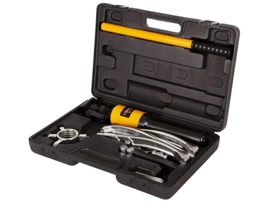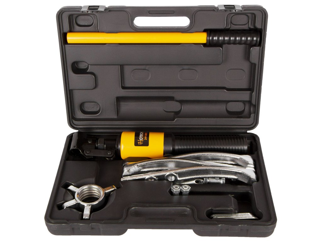 Výkonný hydraulický tříramenný stahovák ložisek, řemenic, ozubených kol apod. o průměru 50 - 200 mm.
