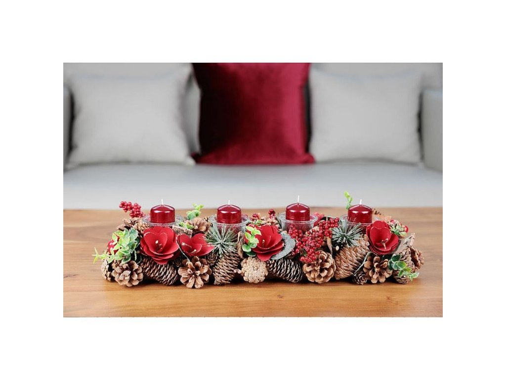 Ikebana adventní MagicHome přírodní červená, 50x16x9cm