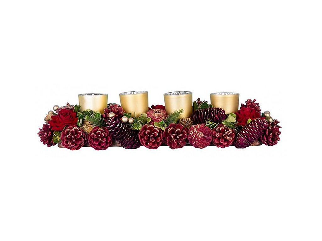 Ikebana adventní MagicHome přírodní červená, zlaté pohárky, 45cm