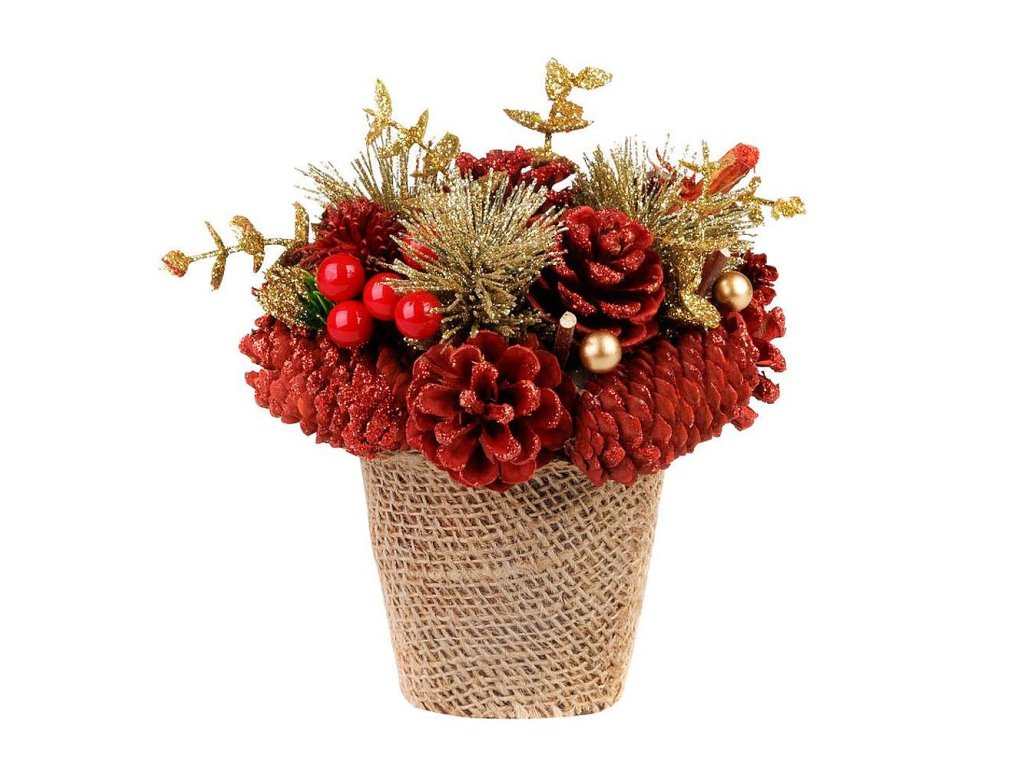 Je to vkusná, přírodní ikebana ozdobená šiškami.