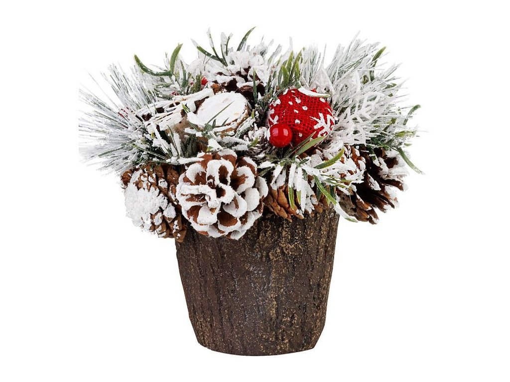 Ikebana MagicHome se zasněženým chvojím, imitace dřeva, 18cm