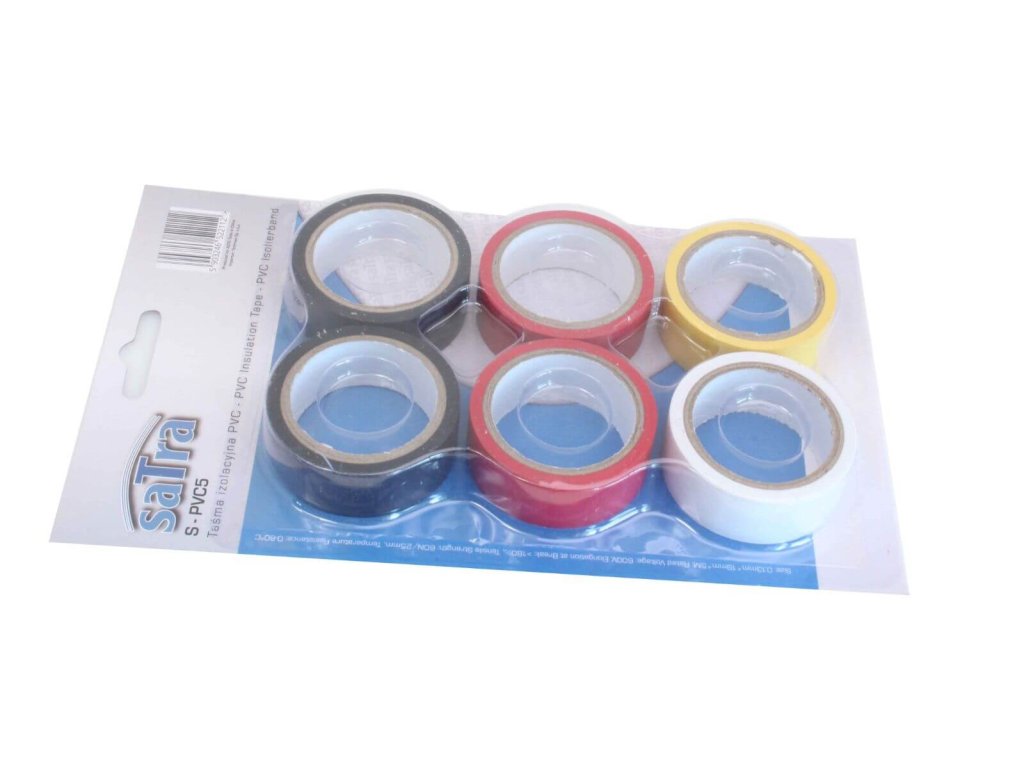 Izolační elektrikářské pásky PVC, 5 m x 19 mm, sada 6 ks - SATRA