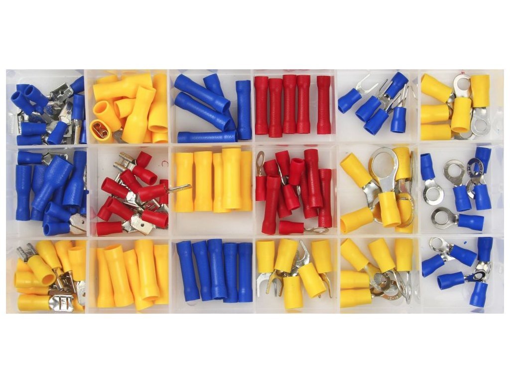 Sada izolovaných konektorů 120ks umístěná v plastovém kufříku s přihrádkami.