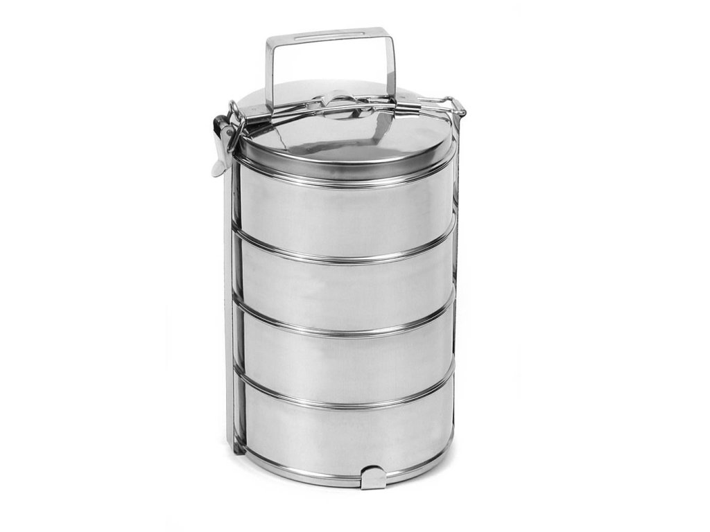 Jídlonosič 4patrový celonerozový je určený na přenášení potravin.Součástí je kovový stojan, opatřený přezkou, která zajistí jeho pevné uzavření, a vrchní poklice.