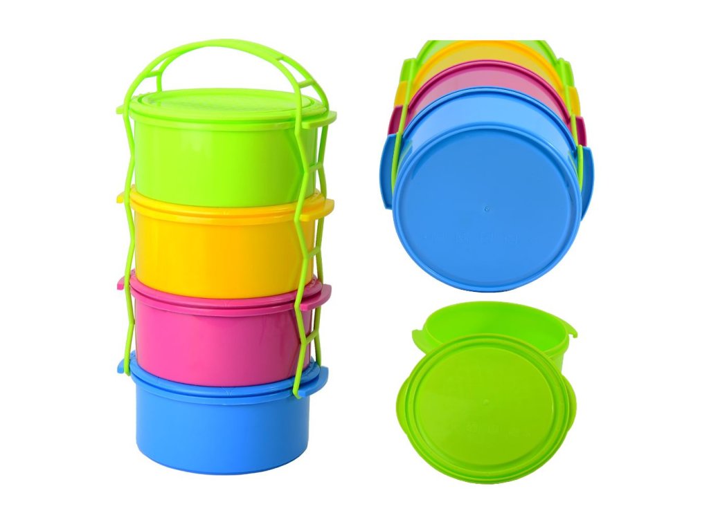Barevný plastový jídlonosič 4 x 1.5 litru.Materiál snáší rozsah teplot -20 až +100°C.