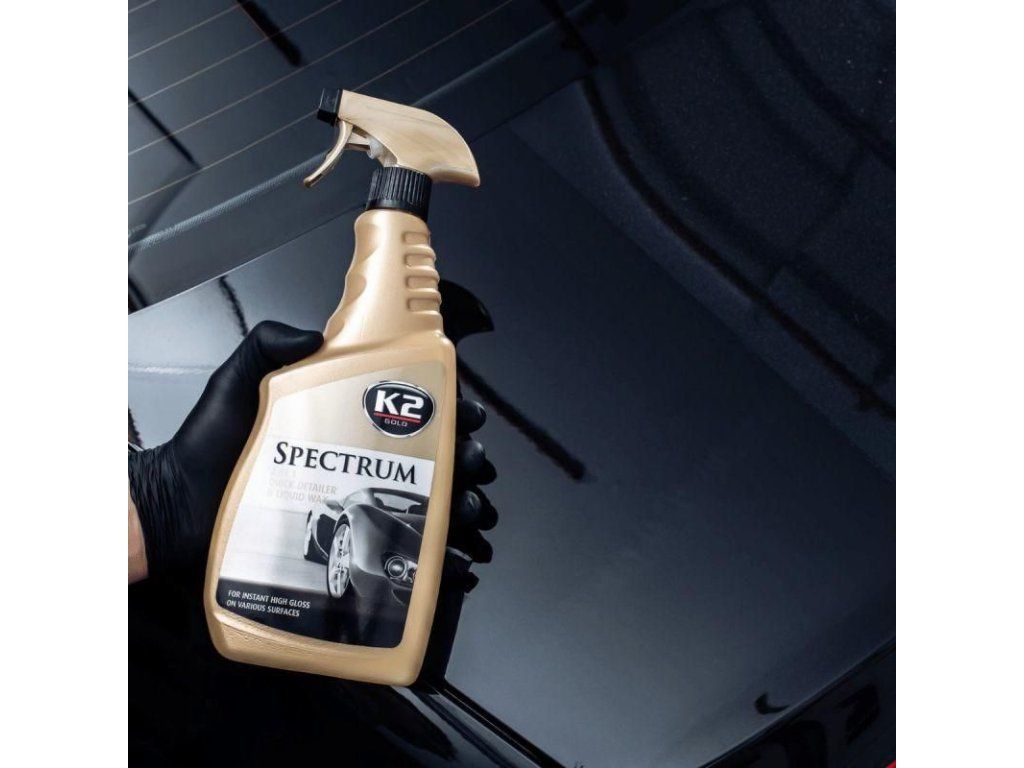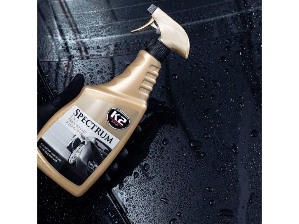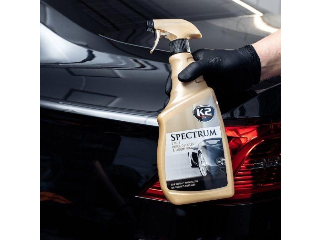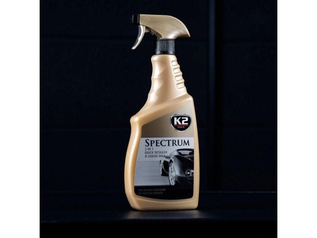 K2 Spectrum je unikátní Quick Detailer (víceúčelový a lesk zvýrazňující přípravek pro použití po umytí) a rovněž syntetický vosk 2v1, který byl vytvořen na základě nejmodernějších technologií. Umožňuje navoskování laku na automobilu bez jakékoliv námahy. Díky tomuto přípravku lak získává vysoký lesk.