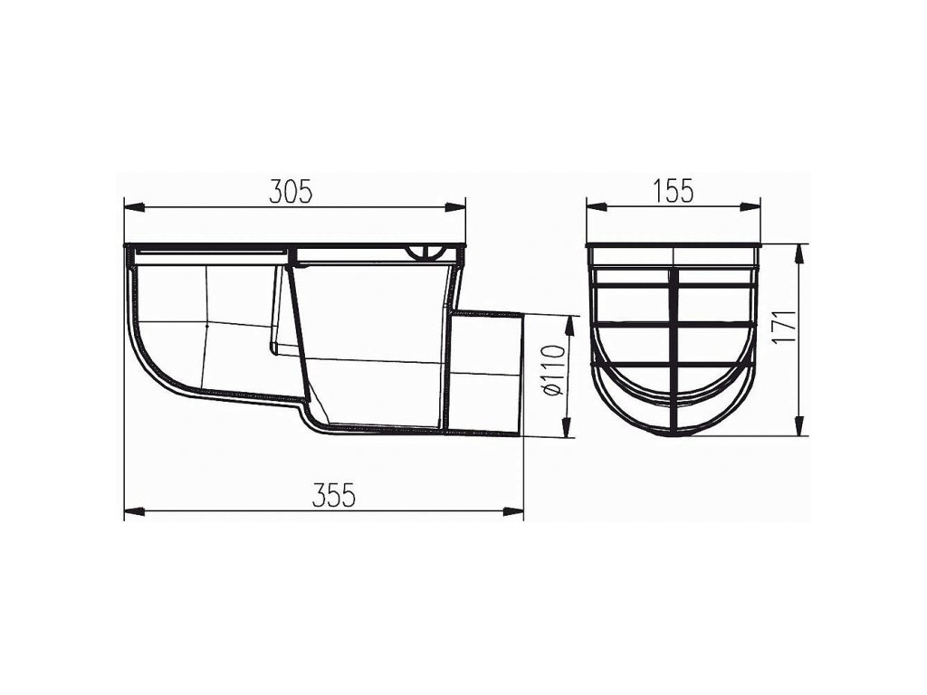 Výrobek má boční odtok D 110 mm. Průtok 375 l/min.