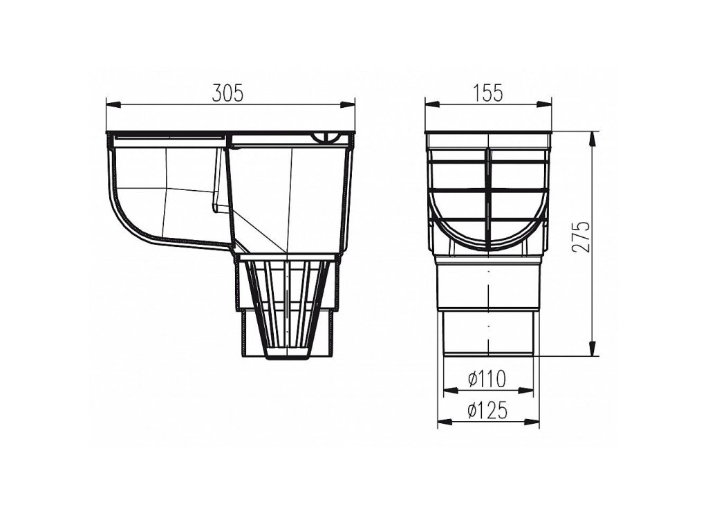 Výrobek je určen pro odvod dešťových (povrchových) vod do kanalizačních systémů vně budov a umožňuje připojení okapových svodů.