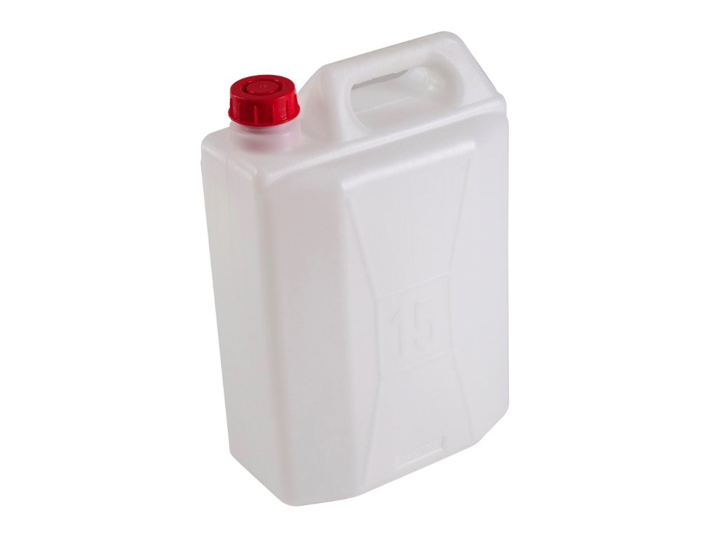 Plastový kanystr vhodný na pitnou vodu, těsnění ve víčku.Objem 15 litrů, rozměry 17 x 28 x 42 cm.
