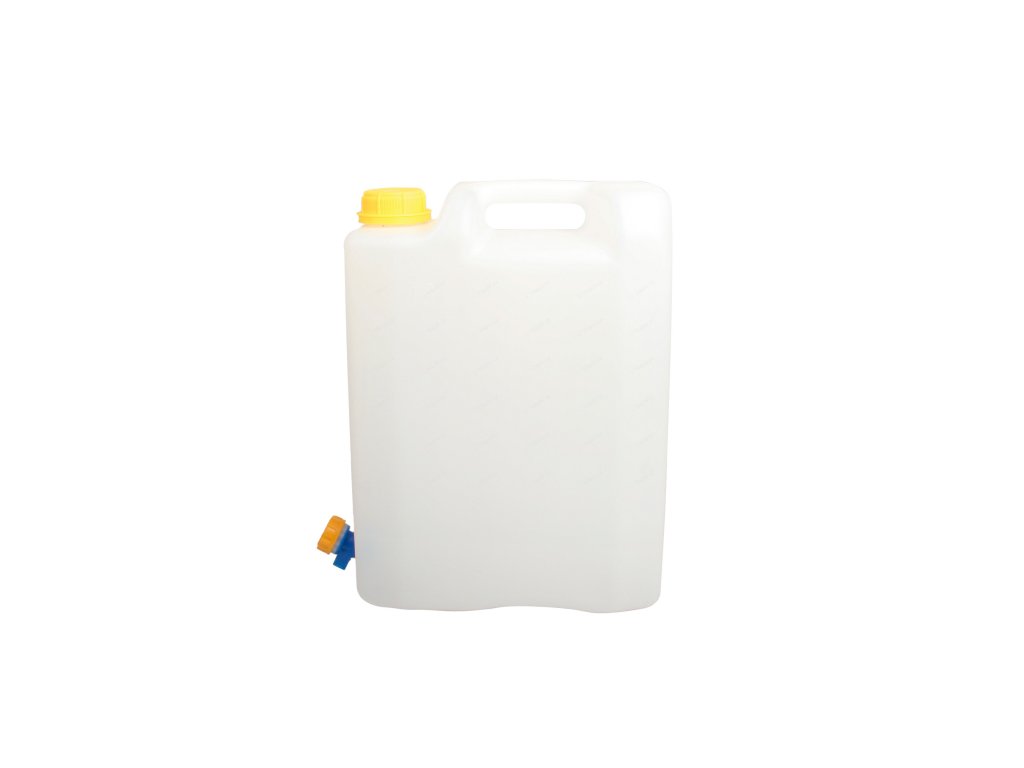 Atestovaný, pro uchování pitné vody v karavanu, osobním vozidle, kamionu, na lodi a podobně. S praktickým nalévacím otvorem a výpustným kohoutem ve spodní části.
