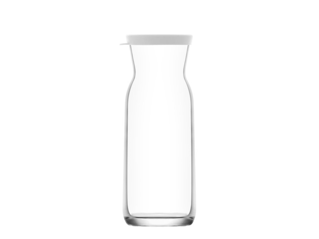 Skleněná karafa z čirého skla výšky 21 cm, objem 700ml.Xoučástí karafy je plastové víčko bílé barvy.