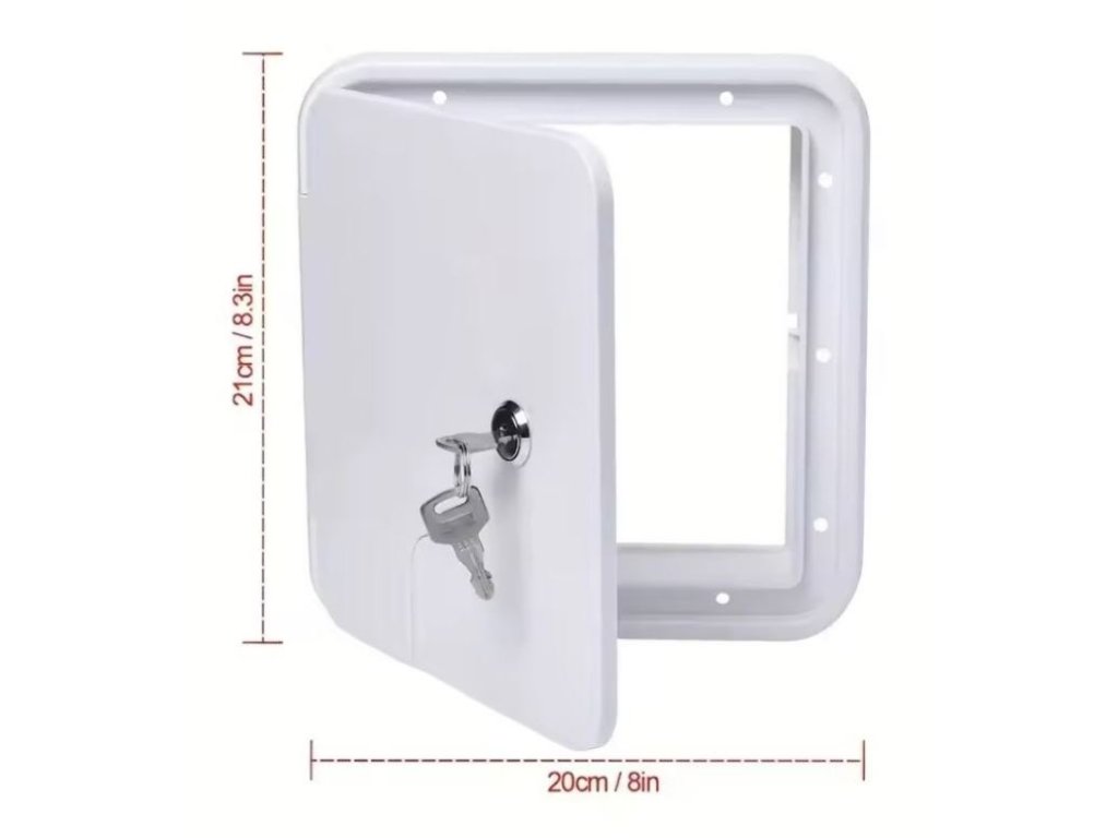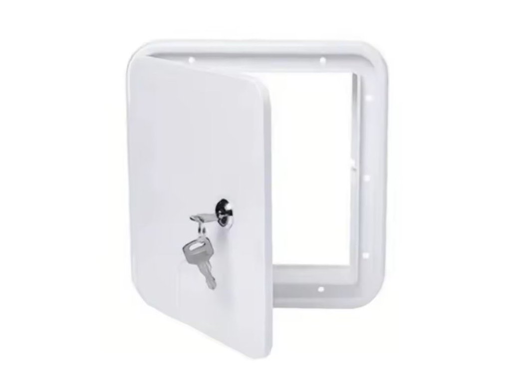 Karavanové dvířka uzamykatelné 195x165mm - bílé Plastová uzamykatelná dvířka pro všestranné použití.**Rozměry:**