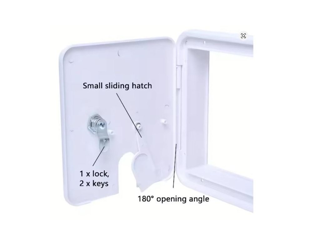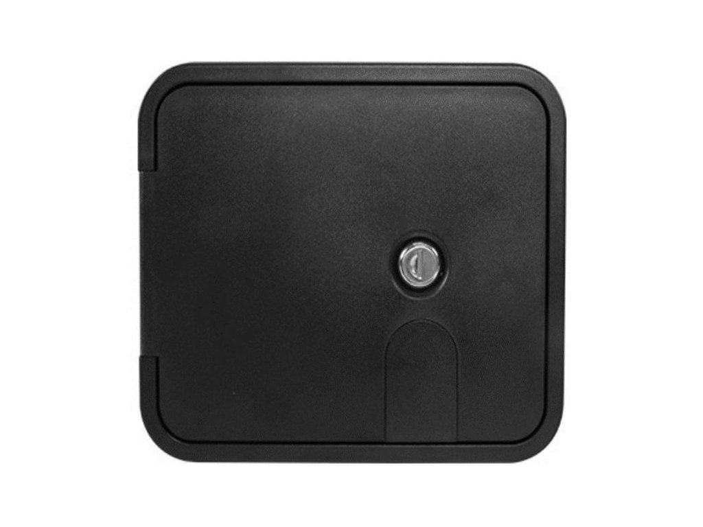 Karavanové dvířka uzamykatelné 195x165mm - černé Plastová uzamykatelná dvířka pro všestranné použití.**Rozměry:**