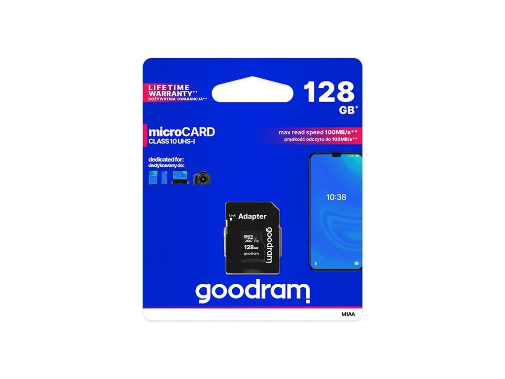 Karta paměťová GOODRAM micro SD 128 GB s adaptéremUltra rychlé UHS-I rozhraní