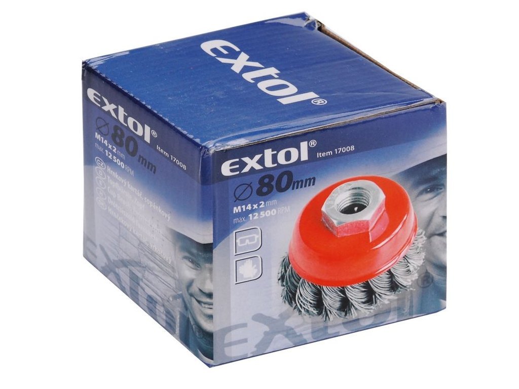 Řada technických kartáčů Extol nabízí široký výběr kartáčů pro všestranné nasazení, např. čištění povrchů materiálů, k odstraňování barev, nečistot, rzi, houževnatých nánosů, ke zdrsňování, odjehlování, odokujování apod. Upínání na úhlové brusky pomocí matice M14 a na vrtačky pomocí stopky o průměru 6mm.