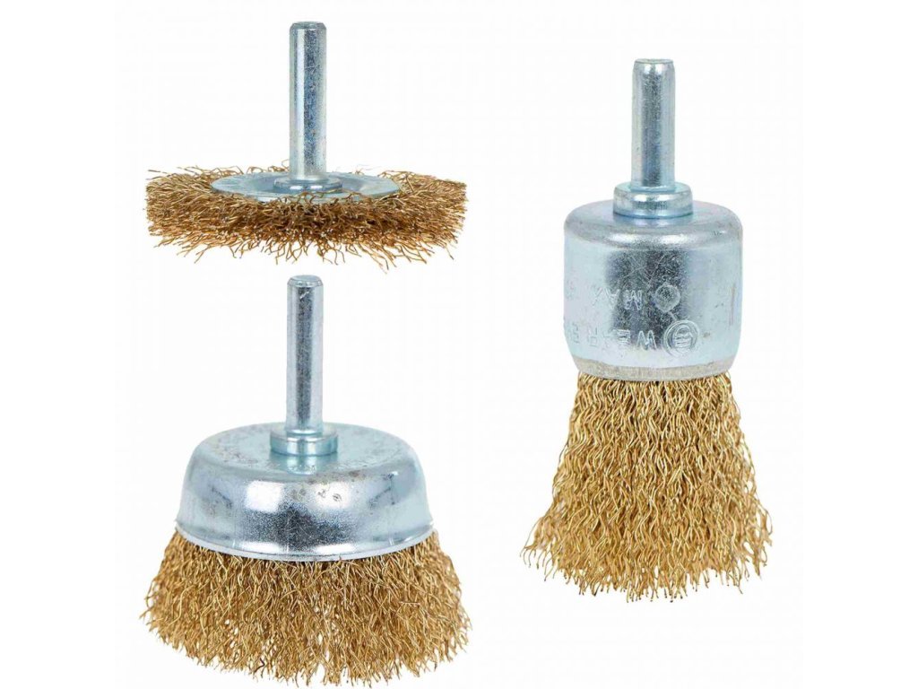 Jsou vyrobeny z kvalitního hustého zvlněného mosazného drátu. Mají 6 mm stopku, která je vhodná ke každé vrtačce nebo šroubováku.