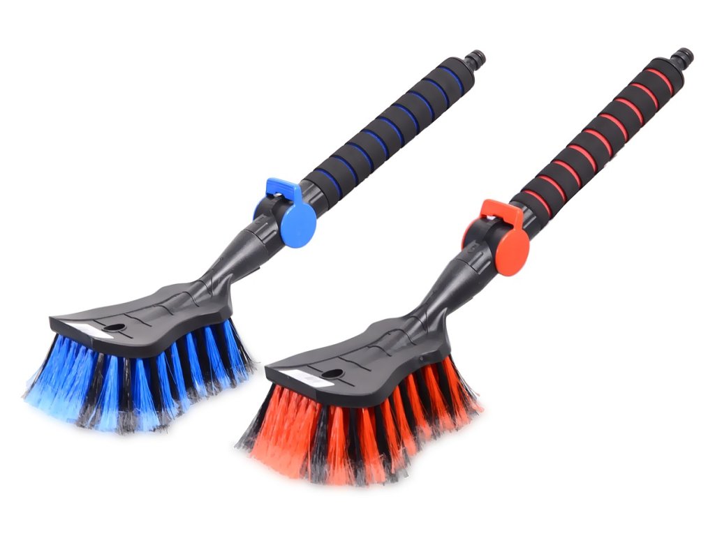 Robustní průtokový kartáč s příjemnou měkkou rukojetí, s šetrnými štětinami a regulačním ventilem.