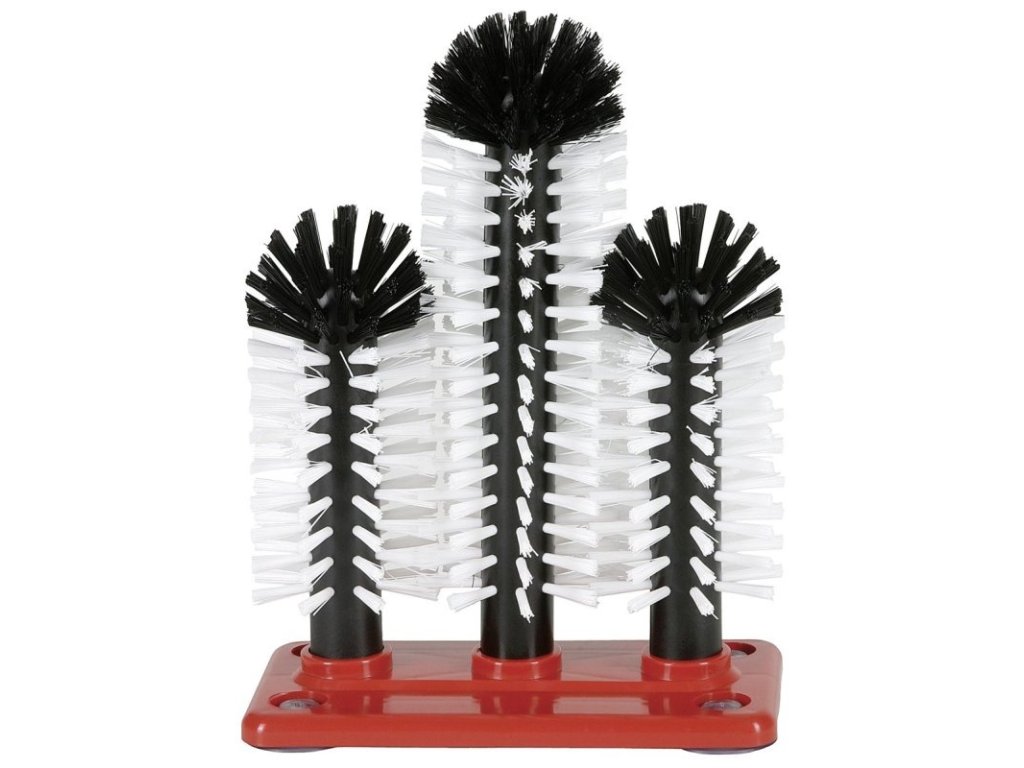 Sada 3 kartáčů na sklenice upevněných na plastové podložce s přísavkami.Velmi snadná použitelnost a rychlé mytí.