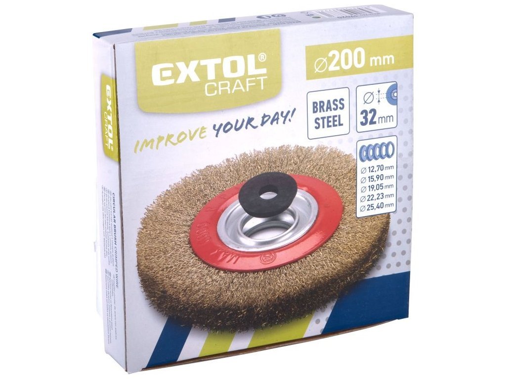 Řada technických kartáčů Extol nabízí široký výběr kartáčů pro všestranné nasazení, např. čištění povrchů materiálů, k odstraňování barev, nečistot, rzi, houževnatých nánosů, ke zdrsňování, odjehlování, odokujování apod. Upínání na úhlové brusky pomocí matice M14 a na vrtačky pomocí stopky o průměru 6mm.