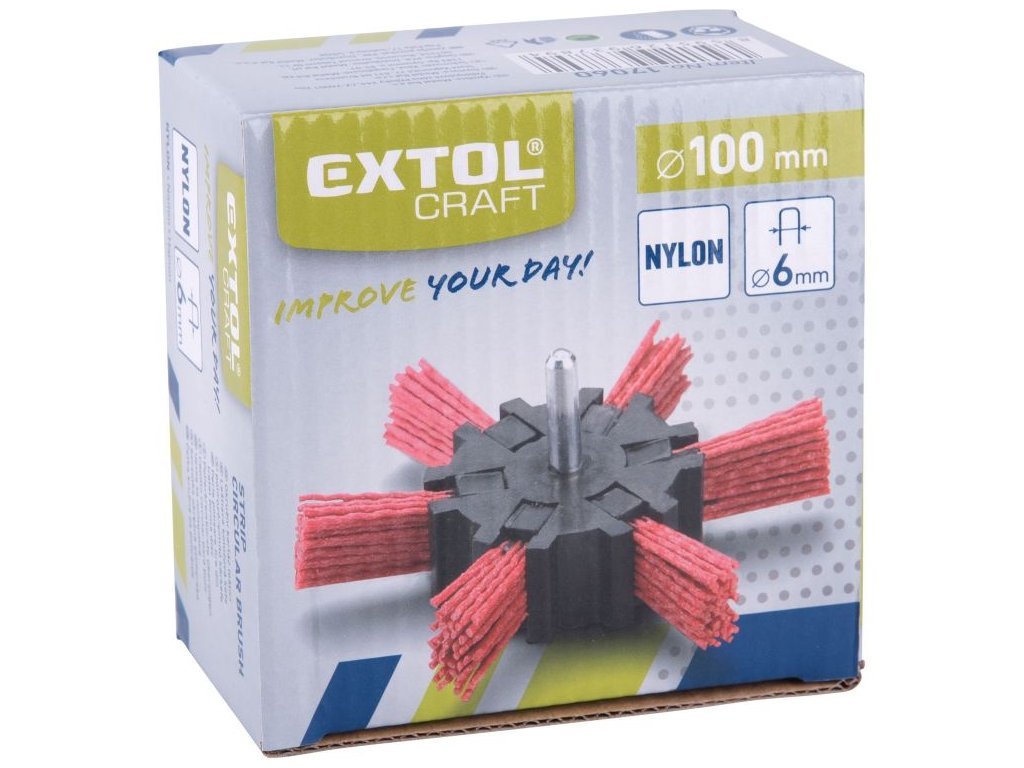 Řada technických kartáčů Extol nabízí široký výběr kartáčů pro všestranné nasazení, např. čištění povrchů materiálů, k odstraňování barev, nečistot, rzi, houževnatých nánosů, ke zdrsňování, odjehlování, odokujování apod. Upínání na úhlové brusky pomocí matice M14 a na vrtačky pomocí stopky o průměru 6mm.