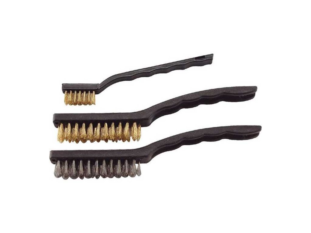 Široký výběr ručních drátěných kartáčů s dřevěnou nebo plastovou rukojetí s dráty z nylonu, oceli, pomosazené oceli, které jsou určeny pro všestranné nasazení, např. čištění povrchů a materiálů, k odstraňování barev, nečistot, rzi a houževnatých nánosů, ke zdrsňování odjehlování, odokujování apod. Způsoby použití podle typu drátu: 1) nylonový drát: vyznačuje se dlouhou životností, vhodný v případech, kdy nechcete poškodit nebo poškrábat čištěný materiál 2) ocelový drát: všestranné použití, zejména pro odstraňování silných nánosů, čištění svárů, odrezování apod. 3) ocelový drát pomosazený: prolehké opracování ploch a odjehlování 4) mosazný drát: pro použití na měd, mosaz a v místech, kde hrozí nebezpečí požárů nebo výbuchu, mosazné dráty nezpůsobují jiskry 5) nerezový drát: v případech, kdy jsou nežádoucí stopy železa z běžných ocelových kartáčů např. pro opracování nerez ocelí, hliníku, hliníkových slitin a dalších neželezných kovů.Fe/MOSAZ, Fe